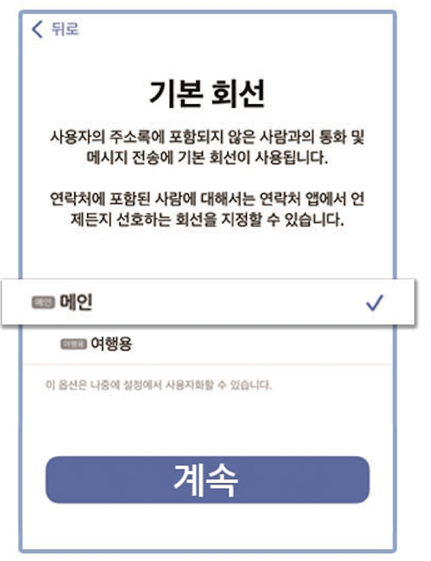 기본 회선은 메인으로 설정하고