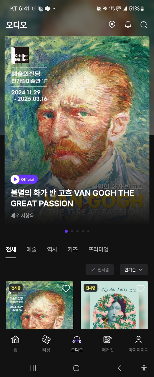 큐피커앱을 다운로드하고 불멸의 화가 반 고흐를 검색하면 3천 원에 도슨트를 들을 수 있다.