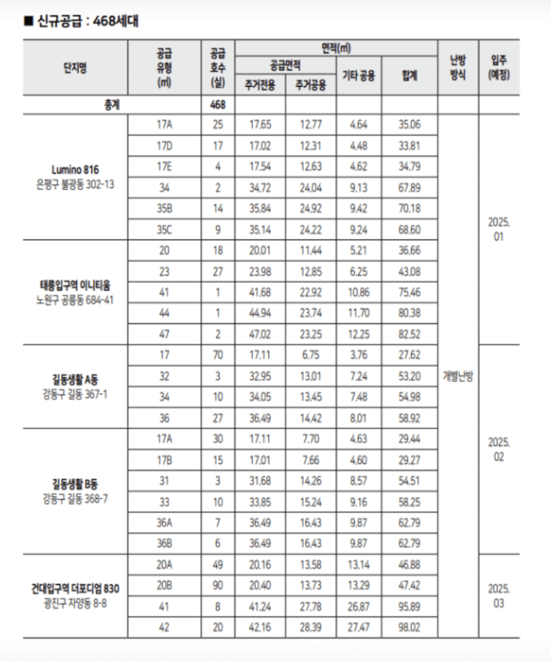 - 입주 : 2025년 1월 8일~2월 7일