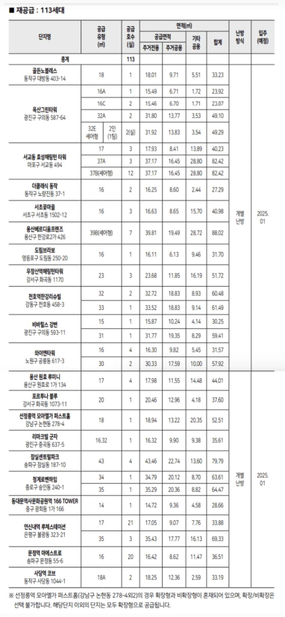 이번 신규 모집에는 서초구, 강동구, 동작구, 광진구 등 총 113가구가 공급되기 때문에 지역별로 잘 살펴봐야 합니다.