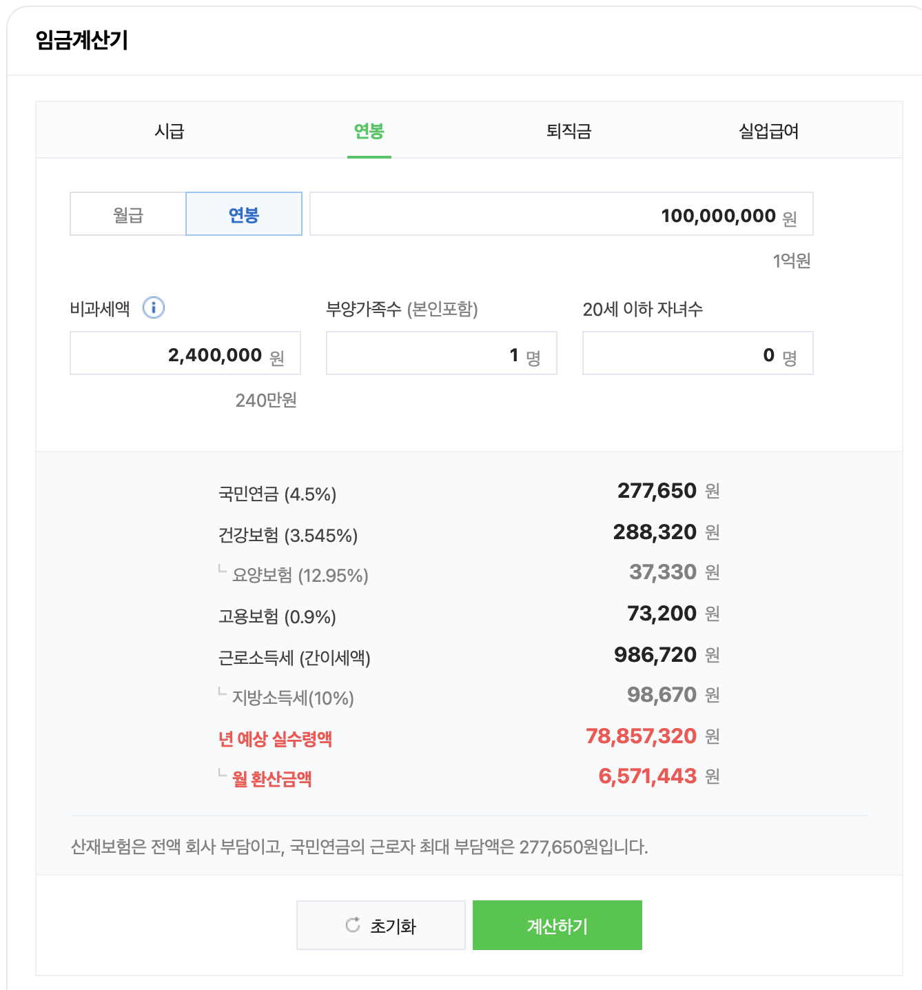 이렇게 세금을 모두 내게 되면 연봉 1억 실수령액은 78,857,320원