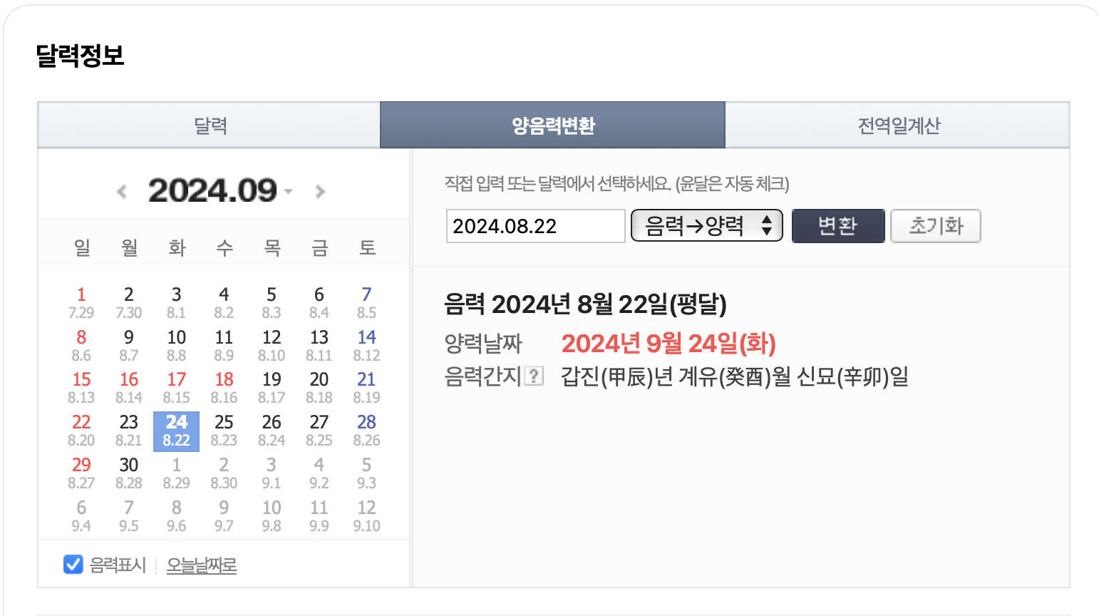 음력 양력 계산기
