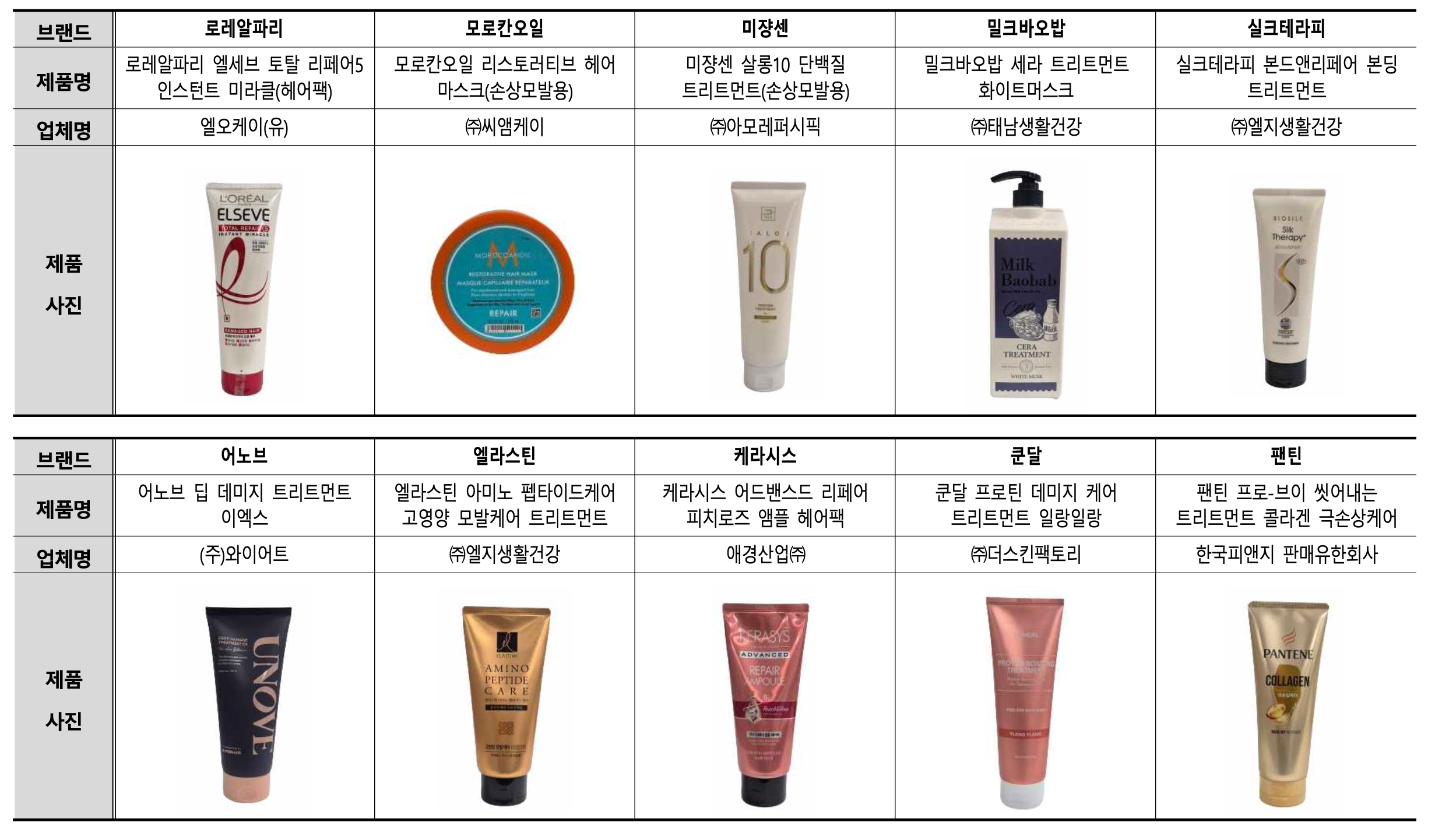 한국소비자원 화학환경팀에서 헤어트리트먼트의 브랜드별 모발 개선 성능 비교 및 가격을 비교했습니다.