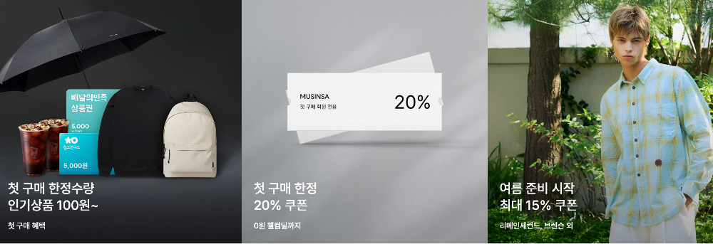 무신사는 시기별, 브랜드별로 다양한 할인쿠폰을 제공하고 있습니다.