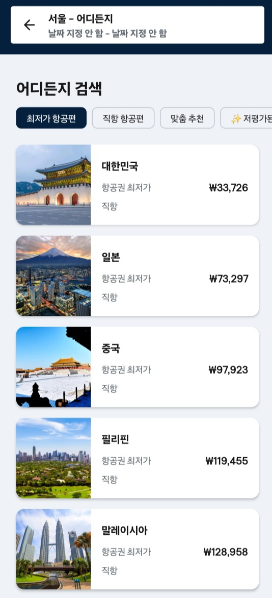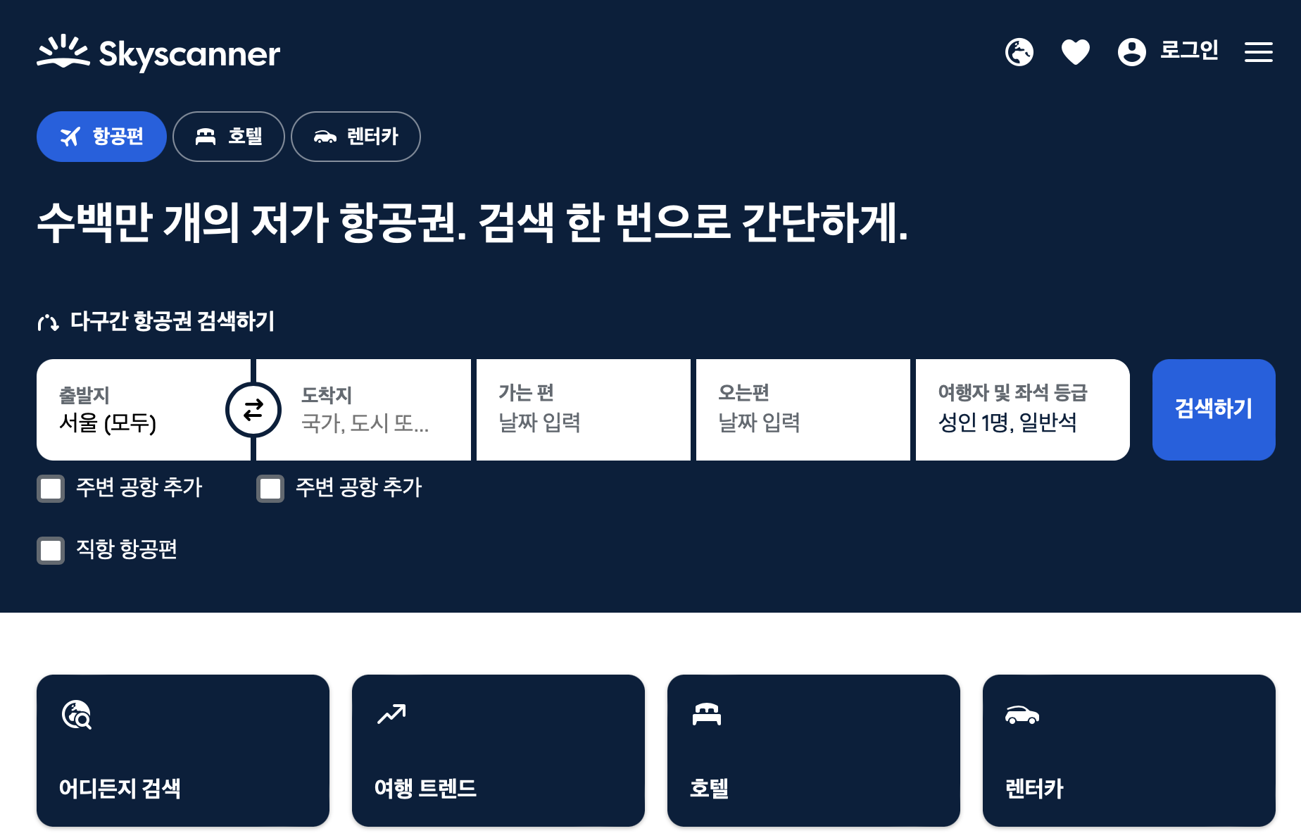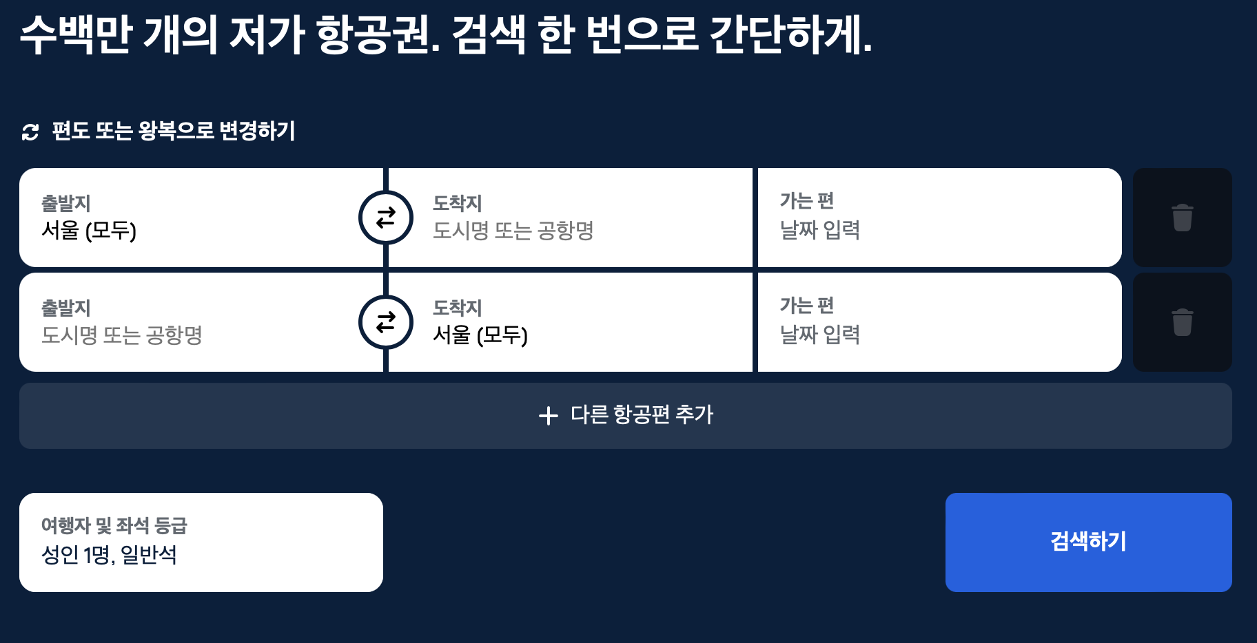 모든 여행 앱이나 항공사 앱을 따로 들어가서 검색설정하지 않아도 된다는 편리함이 있습니다.