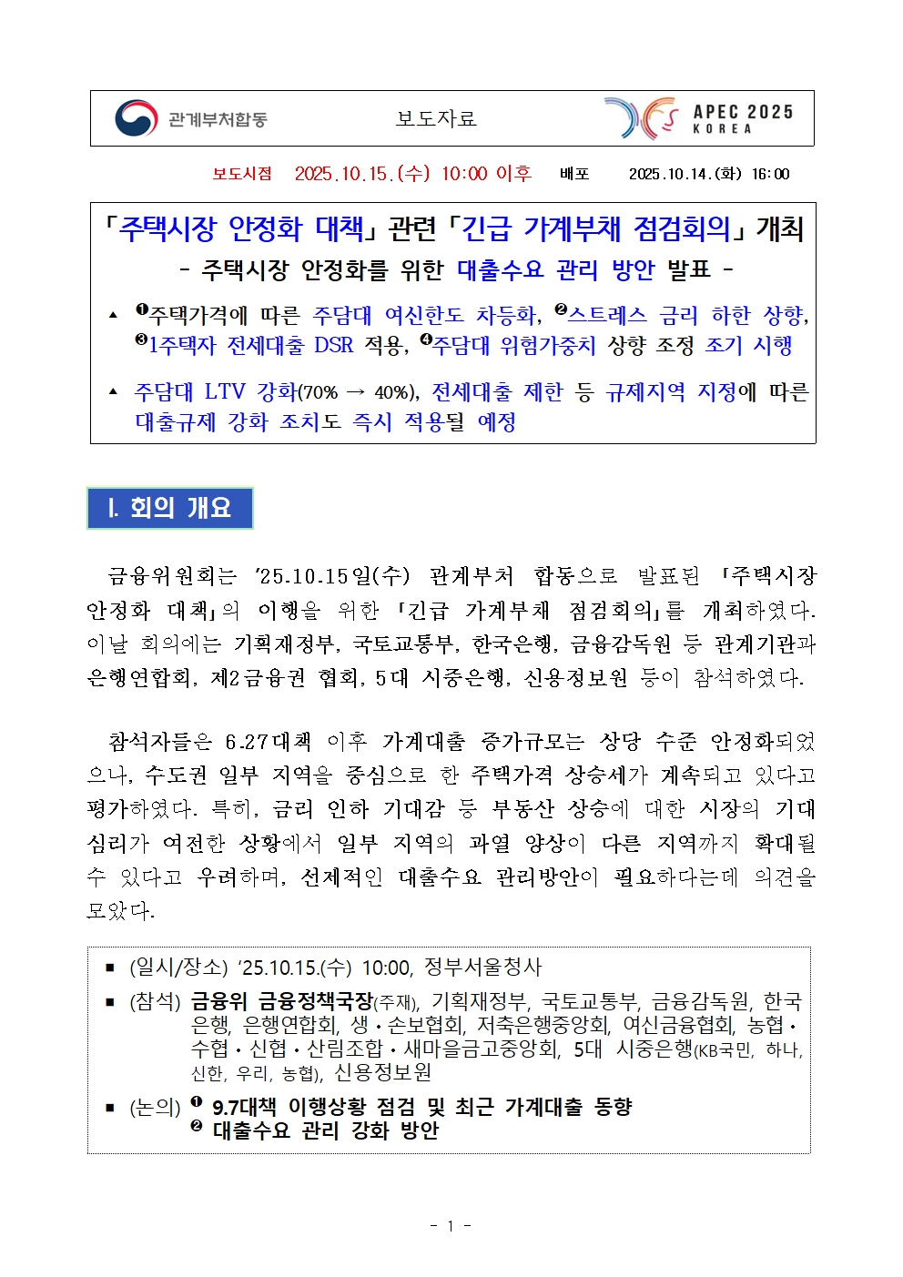 무주택자/처분조건부 1주택자의 경우 LTV 70%→40%